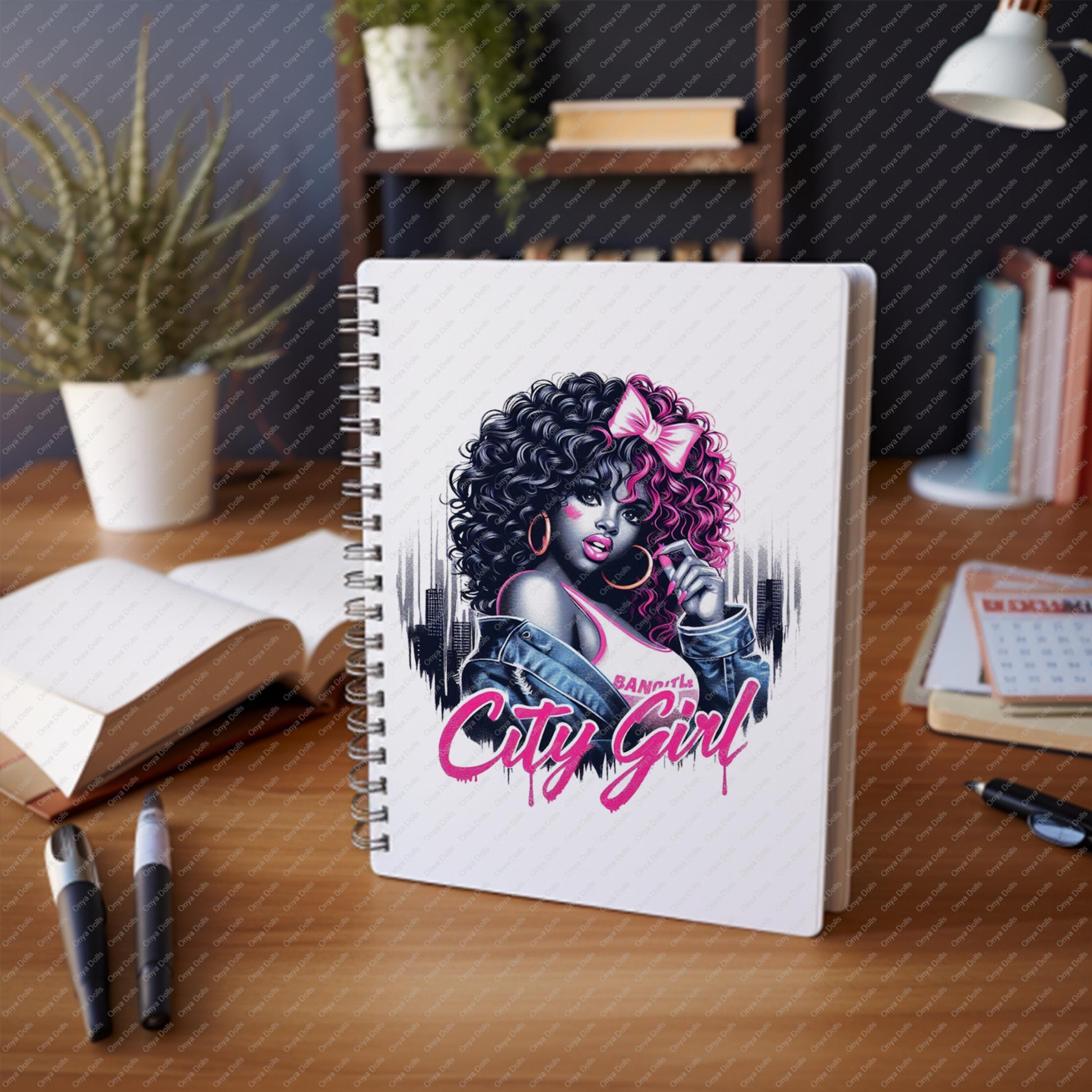 This City Girl Pink Bow PNG features a confident melanin beauty with voluminous curls, a bold pink bow, and statement hoops. Designed with a sleek grayscale city skyline backdrop and vibrant pink CITY GIRL typography, this artwork blends feminine energy with urban attitude.