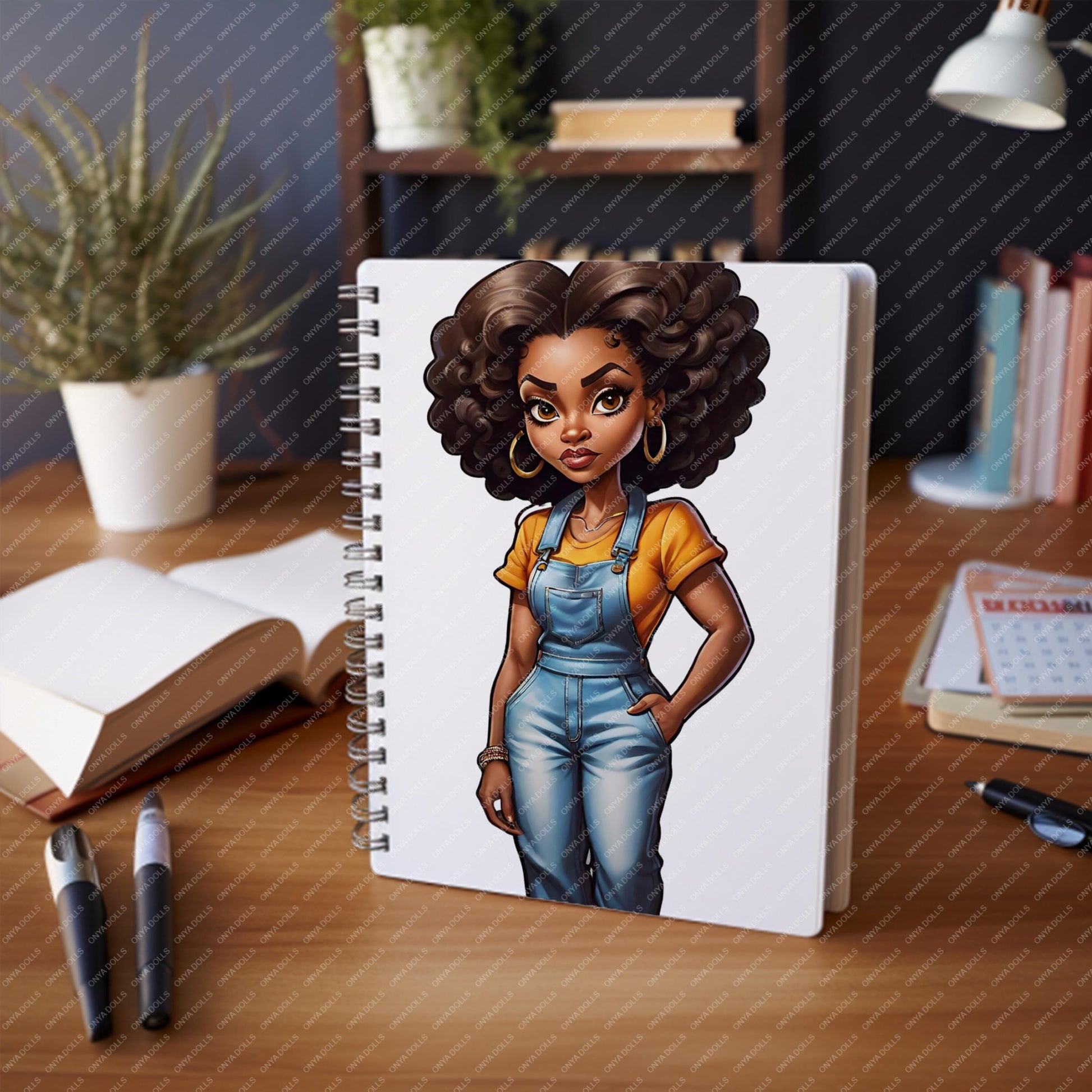 ONYA Melanin Queen PNG – Curly Hair Black Woman in Blue Jeans Clipart for Sublimation, Cricut, & Planners
